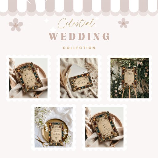 A breathtaking celestial wedding design inspired by royal baroque art and ancient astronomy. Deep crimson and midnight tones frame glowing suns, moons, and stars in a lavish celestial border, creating a perfect balance of opulence and mysticism. Ideal for couples who love vintage cosmic aesthetics and want a wedding invitation that feels both regal and timeless.