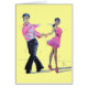 Cha Cha Chaの社交ダンスのダンサーのchaのchaのchaのダンスの招待のchaのchaのchaのダンサーAの組のchaのchaのchaの社交ダンスのダンサー。 短いピンクのflouncyのフリルが付いた服およびピンクのハイヒールの靴を身に着けている女の子。 ピンクのワイシャツおよび黒いズボンおよび黒い靴を持つオスのダンサー