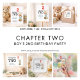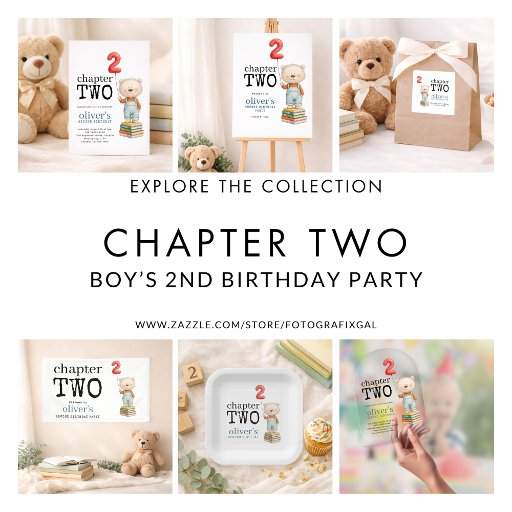 Chapter Two Teddy Bear Books Boy 2nd Birthday. Easily personalise the words as required. With a cute teddy bear holding a balloon and standing on a stack of books illustration.