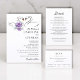 Mark the beginning of your forever with these charming wedding invitations, beautifully illustrated with a pair of watercolor swans forming a sweet heart shape. Complementing the swans are lovely sprigs of purple flowers, adding a touch of gentle color and sophistication. This design is perfect for couples desiring a romantic and artistic announcement for their wedding day. The delicate watercolor style and heartwarming imagery will create an unforgettable impression as you invite loved ones to share in your joy.