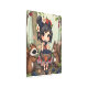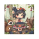 A sweet fairy tale wall art for a child's room. A cute little cartoon chibi fairy eating blackberries with her forest friends, a raccoon and squirrel.