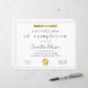 Professional Certificate of Completion in white and gold with your custom logo or business name, perfect for certificate of completion for any type of course completion such as beauty courses, professional & education courses and more! You can also use this elegant faux gold effect award design for any type of accreditation. You can edit all text , add your logo and make professional diplomas for your business or organization.
