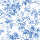 Chic Navy Blue French Toile Roses Floral Wallpaper 壁紙
