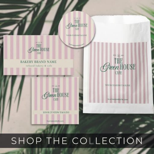 Chic Pink Stripes Green Bakery Logo QR Price ラックカード