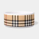 Serve your pet in style with this plaid pet bowl, featuring a warm tan background accented by white, black, brown, and red lines in a classic tartan design. Made from durable, easy-to-clean materials, this bowl is perfect for food or water and designed to withstand everyday use. The timeless plaid pattern adds a rustic yet elegant touch, making it a practical and fashionable accessory for your furry friend’s feeding station. Ideal for plaid lovers and stylish pet parents alike.