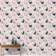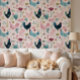 Charming cottage-style wallpaper featuring a whimsical chicken and floral pattern in soft blush pink, teal, and neutral tones. Perfect for kitchens, nurseries, or farmhouse-inspired spaces, this seamless design adds a cozy yet elegant touch to any room.