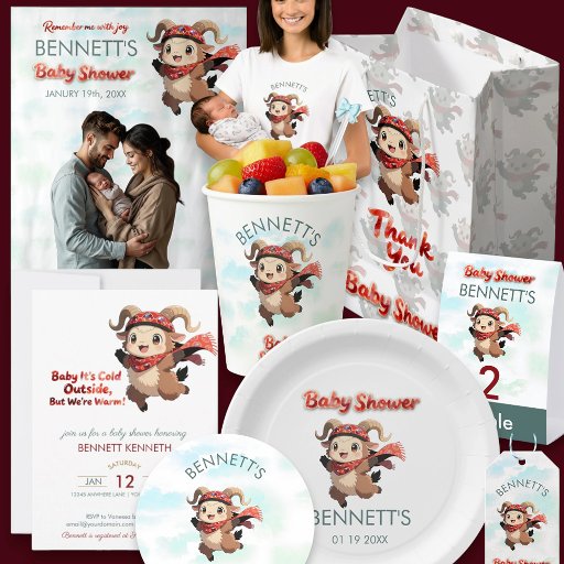 This baby shower wish card is special because it offers 20 heartfelt wishes for guests to choose from, making it an engaging game and a thoughtful keepsake. It features the charming cartoon ram that ties into the "Baby It's Cold Outside" winter theme. The simple, clean design and easy format make it a perfect, coordinated shower activity.
