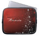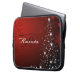 Christmas Monogram White Stars Tree Red Snowflakes laptop sleeve. Unique, beautiful, stylish design. Easy to be personalized. Font style, size and colors can be changed. Matching items are available.