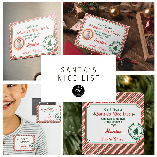 Spread holiday cheer with these official 'Santa's Nice List' certificates, designed to make Christmas morning even more special. The playful candy cane stripe border in classic red and green frames a message from the North Pole, certifying that the recipient has been good. These labels are ideal for any child who believes in Santa Claus and the magic of Christmas, serving as a wonderful keepsake.