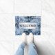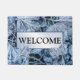 Christmas Party Blue Leaves Snow Holidays Winter Doormat. Unique, beautiful, stylish design. Easy to be personalized. Font style, size and colors can be changed. Matching items are available.