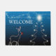 Christmas Party Tree Blue Sky Shiny Stars Rustic Doormat. Unique, beautiful, stylish design. Easy to be personalized. Font style, size and colors can be changed. Matching items are available.