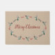 Merry Christmas doormat featuring a hand-painted watercolor wreath of Ruby-throated Hummingbirds and red berries.