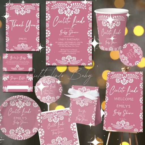 Cielito Lindo dusty pink Papel Picado Baby Showerデザイン: Ieva Jenciute