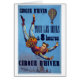 CirqueのdʹHiverの… Tousのlesのsoirs、à 8のheures。 フランスのなサーカスポスターは背景で気球との都市スカイラインの上で広げられる腕によって浮かんでいるaerialistを示します。