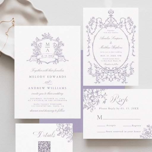 Classic Bloom Garden Lavender Wedding 出欠カード