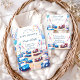 This design features a nostalgic vintage-inspired look with hand-painted race cars, balloons, and stars in warm red, blue, and golden tones. The textured parchment background adds a rustic charm, while playful details like confetti and checkered flags create a joyful, timeless feel. Perfect for adding a classic yet whimsical touch to any celebration or stationery item.