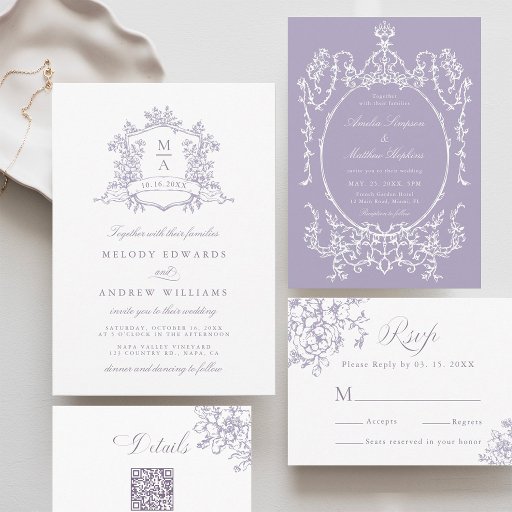 Classic Floral Crest Lavender Wedding Welcome ポスター