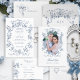 Classic French Blue Flowers & Ribbons Wedding プレイスカード
