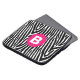 Trendy black and white animal print with bold pink monogram in center.