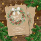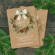 This beautifully designed holiday beverage coaster showcases elegant watercolor artwork of a wreath embellished with a white bow, pinecones, green holly leaves, red berries, and pine needles. Its classy yet rustic design captures the essence of the December holiday season and appeals to those who appreciate artistic illustrations. The coaster offers customization options, allowing you to personalize it with your seasonal greeting, making it a thoughtful choice for spreading holiday cheer.