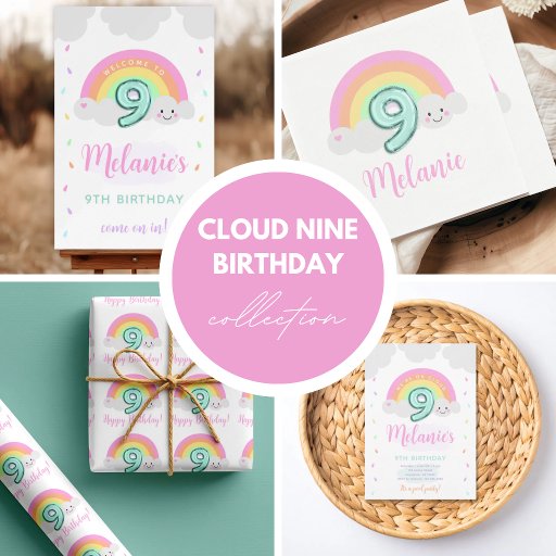 Celebrate your child turning nine with this whimsical Cloud Nine birthday invitation! Featuring soft blue skies and dreamy clouds, this design is perfect for a fun and lighthearted 9th birthday celebration. Whether you're planning a hot air balloon, sky-themed, or “up up and away” party, this invitation sets the perfect tone. Easily personalize with your party details and invite guests to join a celebration that’s truly on cloud nine.