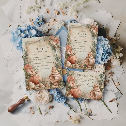 Coastal Seashell Botanical Elegance 招待状