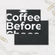 Coffee Before Chaos is a fun and relatable text design for coffee lovers who need their caffeine before facing the day. Perfect for t-shirts, mugs, hoodies, and workspace decor. Ideal for mornings, routines, and productivity vibes.