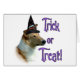 このハロウィーンのトリックかトリートか?私たちの休日のデザインはお気に入りの、あなたの犬の品種、黒い、滑らかなコーティングされたコリー、魔女の帽子を着ている。今年は全てのハローズに少し「ホカスポカス」を追加!