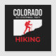 Featuring the outline of The Centennial State with a red hiker climbing upward, it captures the strength, freedom, and beauty of life in the Rocky Mountains.