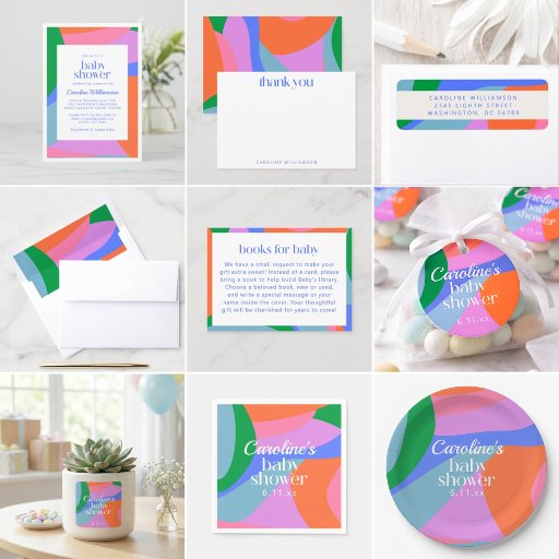 This sticker adds a bright, modern touch to baby shower details. The flowing abstract wave design feels playful, cheerful, and easy to style with colorful or neutral decor. Perfect for sealing envelopes, decorating favors, or adding a fun pop of color to party packaging and table details.