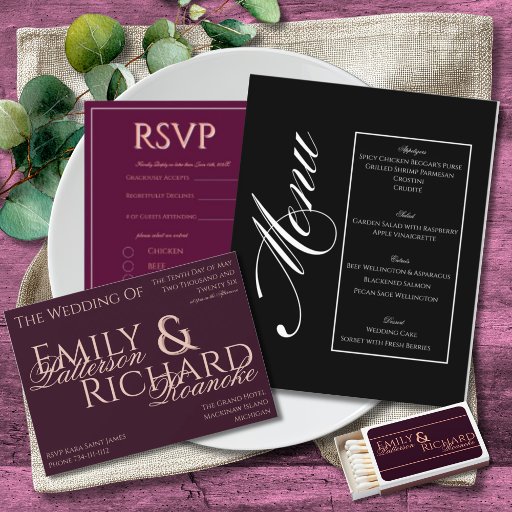This Design Features an almost Deep Black colored Background and a contrasting white text. The text combination is a mix of bold and calligraphy. Perhaps the best part about this Invitation is that is comes in multiple colors, so you can mix and match different invitation colors with your other wedding stationary, but everything is designed to be cohesive, no matter what color you pick. We wanted something fun and going "full color wheel" seemed to be the ticket. We home you enjoy this invitation and the coordinating items available in our store.