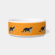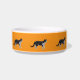 comedero para mascotas con estampado de gatos y fondo anaranjado pequeño