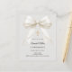 Invite guests with this sophisticated Confirmation invitation. The design features a luxurious ivory satin bow draped with delicate pearls and a shimmering gold cross set against a soft dove gray background. It is a beautiful choice for a young girl celebrating her Confirmation.