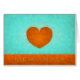 Tarjeta de felicitación. Corazón naranja acuarela, fondo azul celeste. Feliz día de San Valentín.