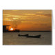 Cozumelの水辺地帯の日没。 モダンなフェリー桟橋を対比する漁船。