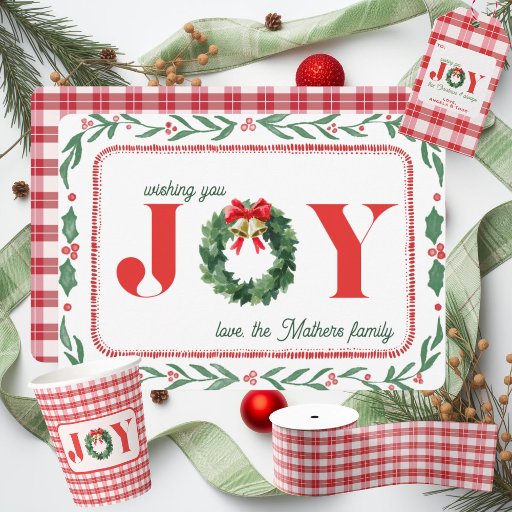 Celebrate the season with this charming collection. The word "JOY" takes center stage, capturing the heartfelt spirit of the holidays, while the boxwood wreath symbolizes everlasting life and renewal.