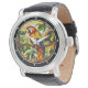 Crimson Jungle Time" - Stained Glass Red Parrot 腕時計
