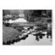 小さい木橋は鏡のように見えるそれのまわりに多くの木を反映する湖に及びます。 大きく白い石は飛石および小さいコテッジのかいま見として緑の草木でおおわれていて機能できます。