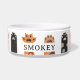 This bowl features a colorful cat oaws with custom name.