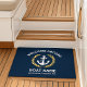 Welcome guests in true nautical style with this customizable "Welcome Aboard" boat doormat. Featuring a classic anchor surrounded by golden laurel leaves, this marine-themed mat adds a personalized touch to your dock, boathouse, or vessel entryway. Customize it with your boat’s name and home harbor location for a unique greeting that's both functional and stylish. Made with durable materials to withstand the elements—perfect for any boating enthusiast.