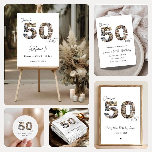 Celebrate fifty years of memories with this elegant custom photo collage 50th birthday invitation. Featuring a stylish “50” filled with personal photos and modern typography, this invitation is perfect for milestone birthday celebrations. Fully customizable with name, date, time, and venue, it creates a meaningful and unforgettable first impression. Ideal for classy, modern, and photo-focused birthday parties on Zazzle.