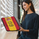 Protect your tech with the vibrant energy of the pitch using this custom design inspired by Spanish football. Showcasing the bold red and yellow stripes of the national flag alongside the official crest, this high-impact layout is a must-have for any dedicated supporter. You can fully personalize the surface with a custom name and favorite jersey number, complemented by a sharp soccer player silhouette and bold typography. It’s a high-quality, spirited gift for students, athletes, or fans wanting to showcase their pride in "La Roja" with contemporary style.
