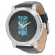 This custom text watch features a sleek black design with bold blue typography, allowing you to add names, dates, initials, or a short message to create a truly personalised timepiece.