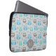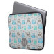 Cute Blue Grey Owl Pattern Monogram ラップトップスリーブ