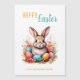 Cute Bunny Colorful Eggs Flowers Happy Easter Holiday Magnet Card. A pastel colored Easter greeting card featuring a cute bunny illustration surrounded by decorated eggs and flowers. The bunny has a soft, watercolor style appearance with a friendly, smiling face.