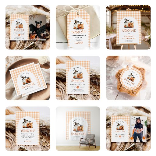 Cute Gingham Halloween Ghost 1st Birthday 横断幕
