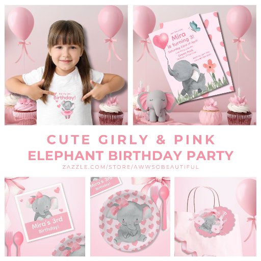 Cute Girly and Pink Elephant Birthday Partyデザイン: Amazing Beautiful Creative Designs