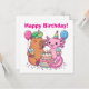 Adorable capybara and axolotl celebrate a joyful birthday with cake, balloons, and boba in this cute kawaii design perfect for kids.