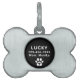 Cute custom pet dog ID tag. This design features cute paw print and heart accents on Black background. You can personalize with a phone number and contact name information for their owner. Unique simple and clean design to identify and keep your pet family member safe.