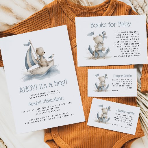 Cute Nautical Teddy Bear Boys Baby Showerデザイン: Akhates Designs